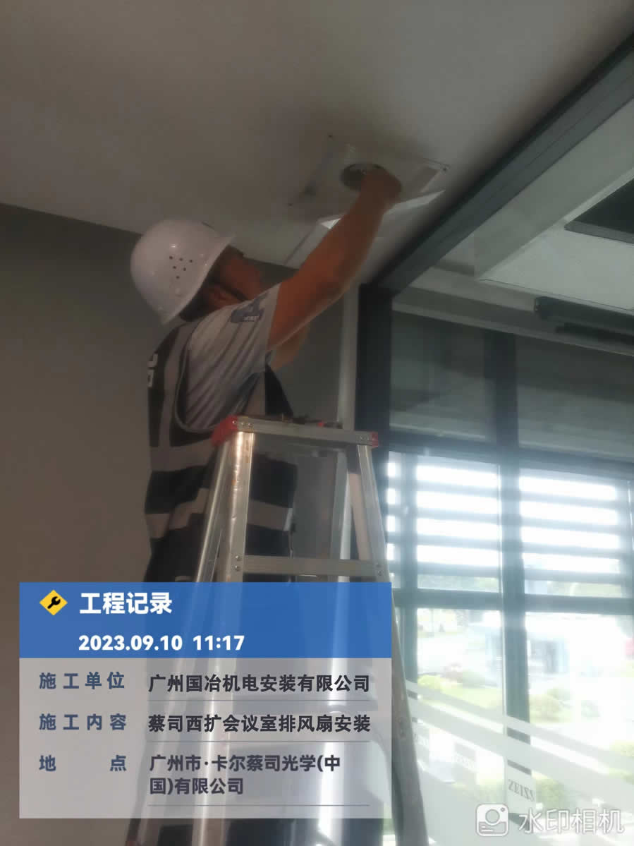 工程图例:卡尔蔡司西扩会议室排风扇安装施工工程实例。