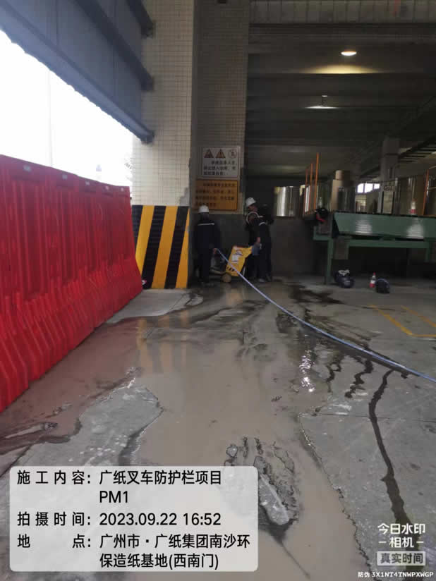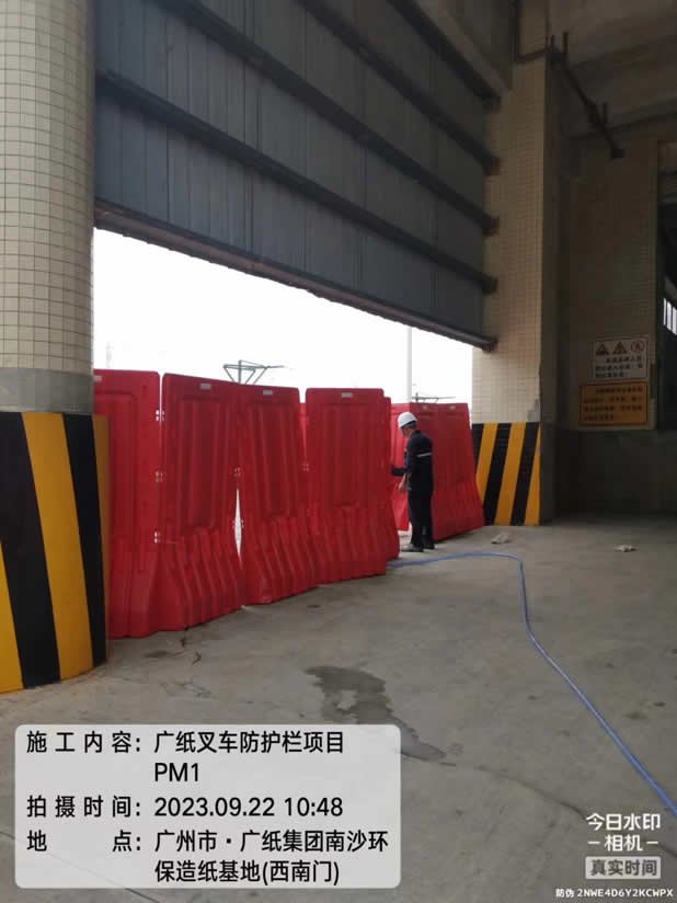 施工例图:广纸集团南沙环保造纸基地,叉车防护栏施工项目