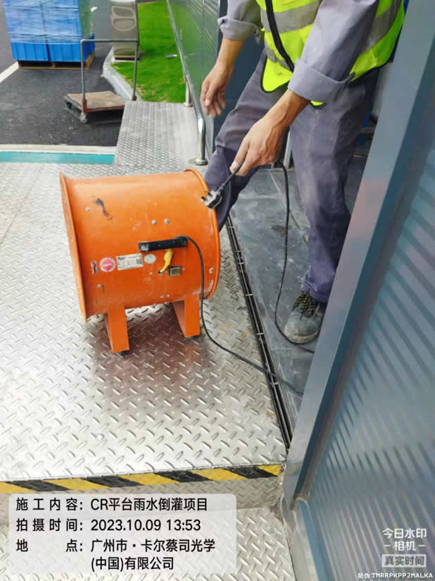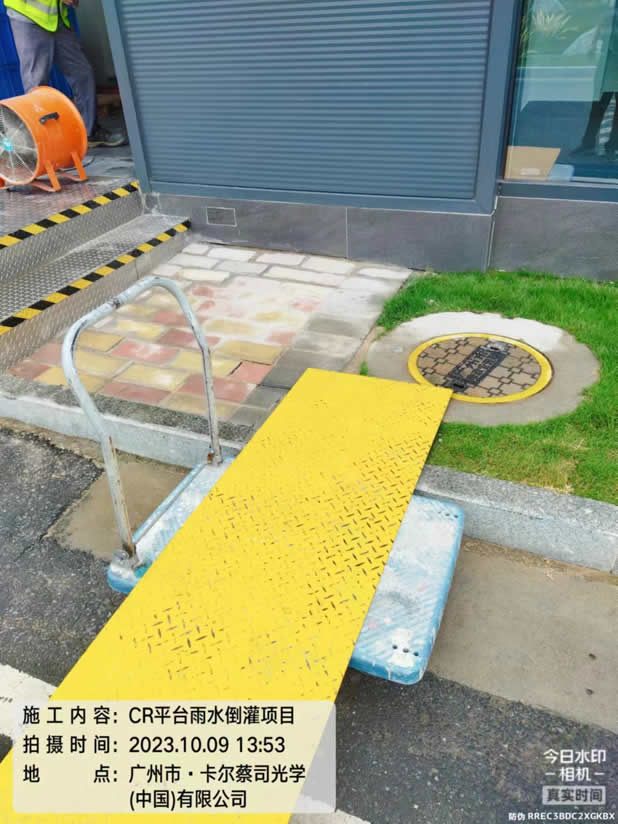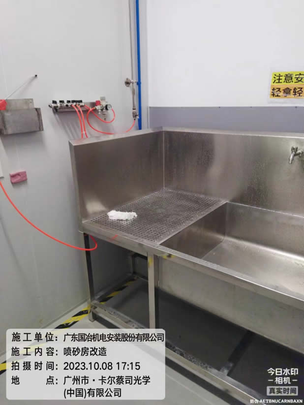 施工图例:卡尔蔡司公司CR平台雨水倒灌整改项目、电视看板安装调试、喷砂房升级改造