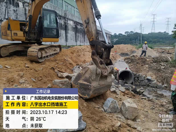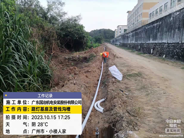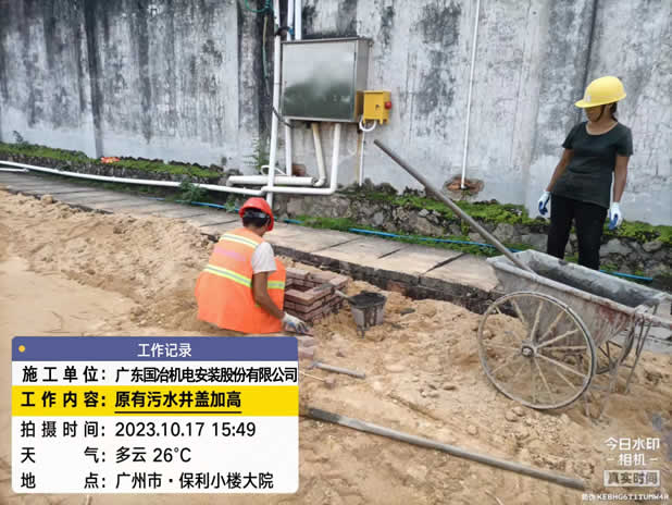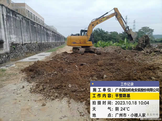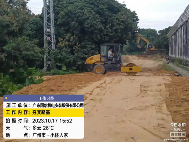 工程图例:广州市保利小楼大院附近某机构清理现场、原有污水井盖加高、八字出水口挡墙施工、路灯基座及管线沟槽、转运土方填筑施工、平整路基、夯实路基施工人员:5名工人+1名现场管理人员,挖机1台,压路车1台,土方车1台施工单位:5845cc威尼人(股份)有限公司-官方网站施工时间:2023年10月18日
