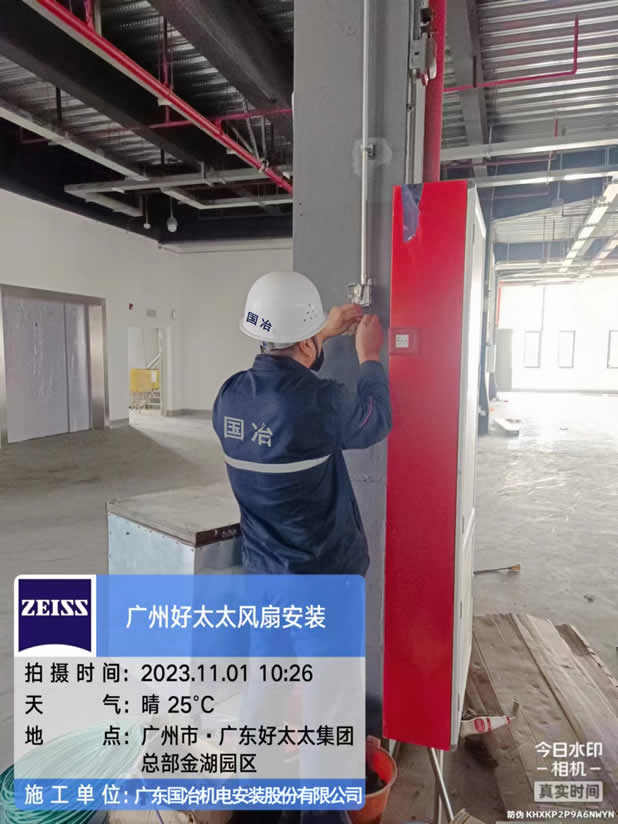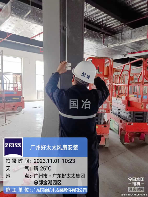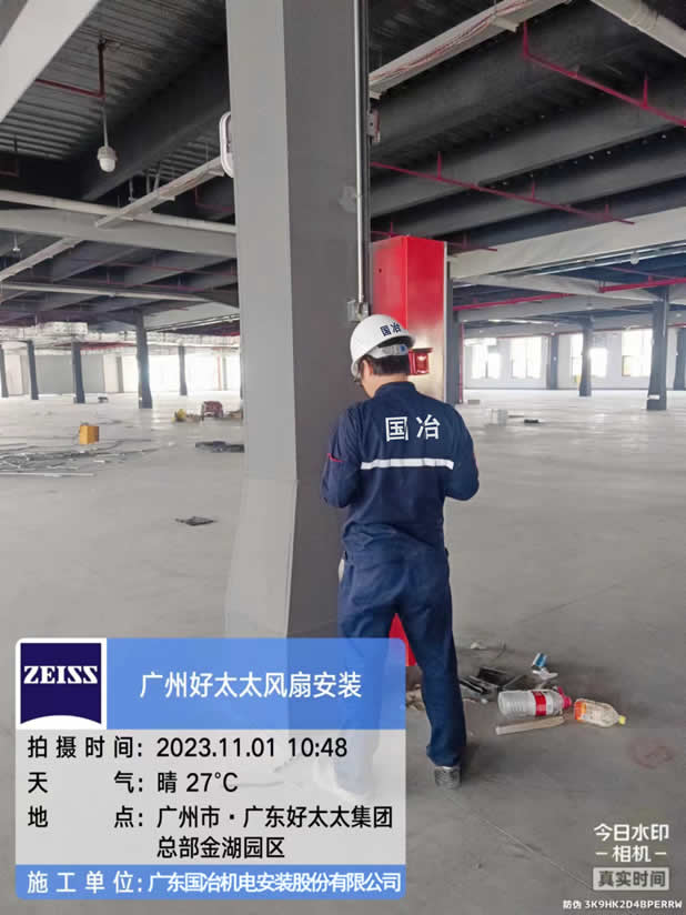 工程例图:好太太集团车间厂房风扇安装工程施工现场。