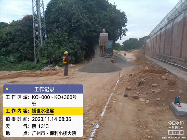工程图例:广州市保利小楼大院增城戒毒所外围防撞墩钢筋整改,防撞墩施工,铺设水稳层施工人员:5名工人+1名现场管理人员,挖机1台,压路车1台,土方车1台施工单位:5845cc威尼人(股份)有限公司-官方网站施工时间:2023年11月10日至15日