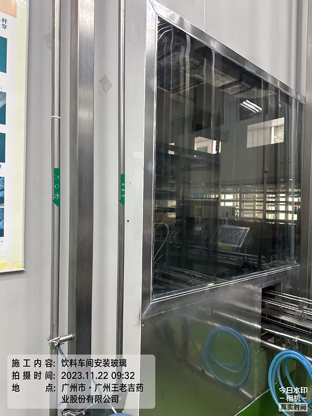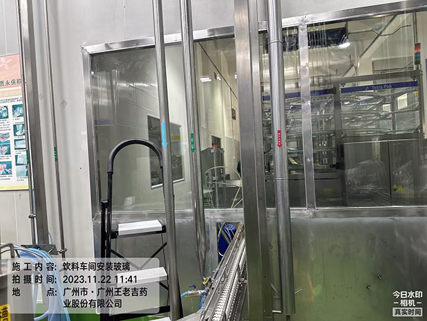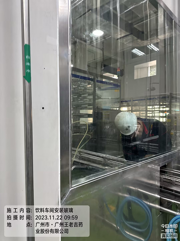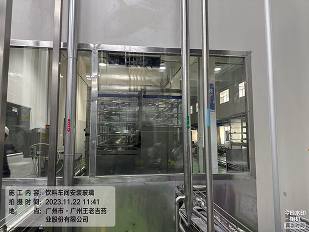 工程图例:广药王老吉施工项目饮料车间安装玻璃