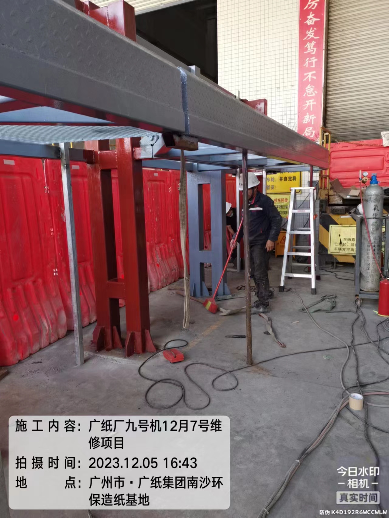广州造纸集团有限公司(广纸集团),环保设施与技术先进,各项重要排放指标均大幅低于国家标准。5845cc威尼人(股份)有限公司-官方网站与广纸集团保持长期友好合作关系,5845cc威尼人机电是广纸集团优质工程维护服务商。施工图例:广纸叉车防护栏项目PM9和维修项目施工单位:5845cc威尼人(股份)有限公司-官方网站施工时间:2023年12月5日