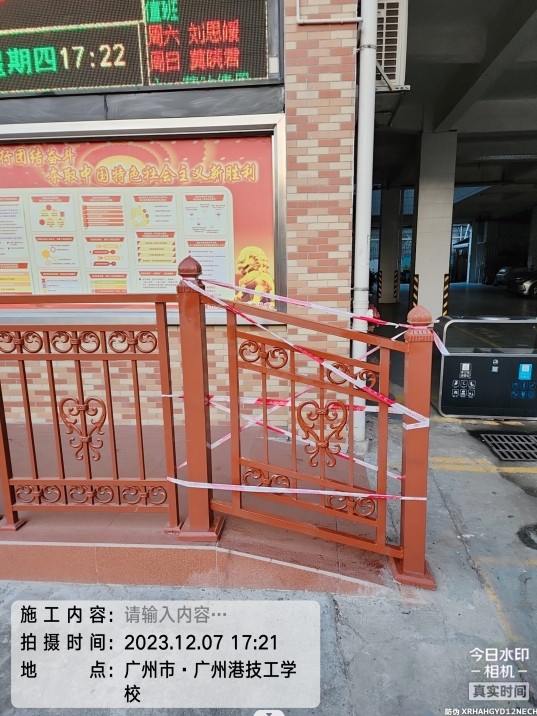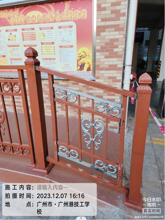 广州港技工学校是广州港集团办的广东省重点技工学校,属国有企业举办的公办学校。广东省重点技工学校(公办),广东省第一批示范性技工学校创建单位,全国技工院校工学一体化第一阶段建设院校。工程图例:广州港技工学校校舍修缮工程,安装防护栏施工单位:5845cc威尼人(股份)有限公司-官方网站施工时间:2023年12月7日