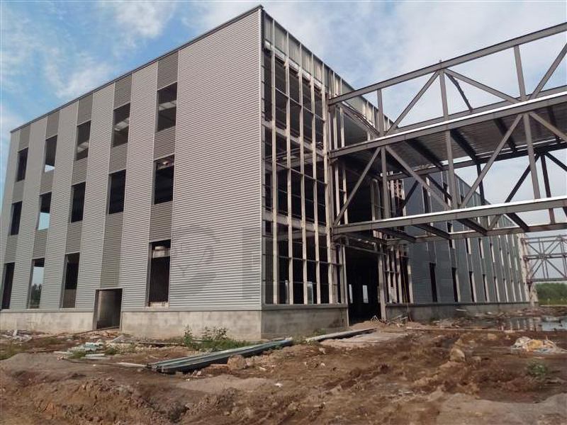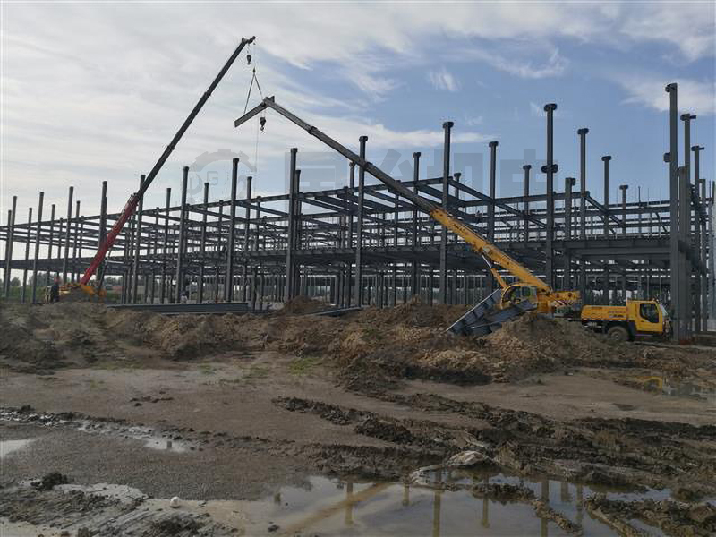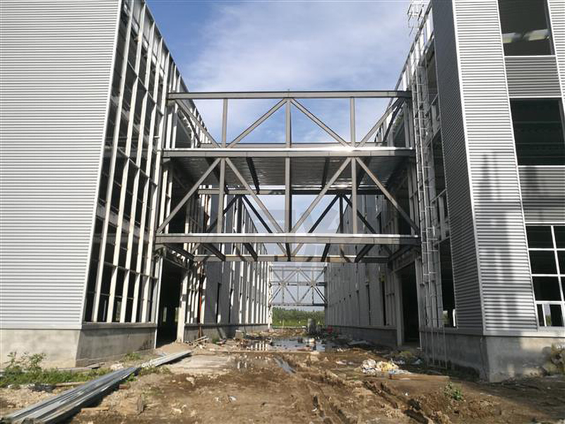 波浪腹板钢梁、波浪腹板次梁,平腹板钢柱,钢架用钢量为40kg/㎡,