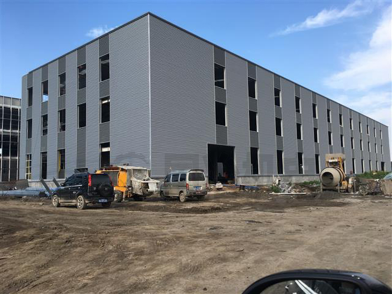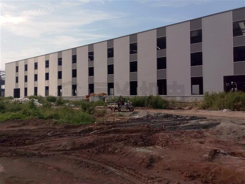 长度112米×跨度30米×高度17.8米三层框架,跨度方向为10米×3跨,开间8米,屋面为坡屋面,坡度1:20,四面女儿墙,两侧内天沟。