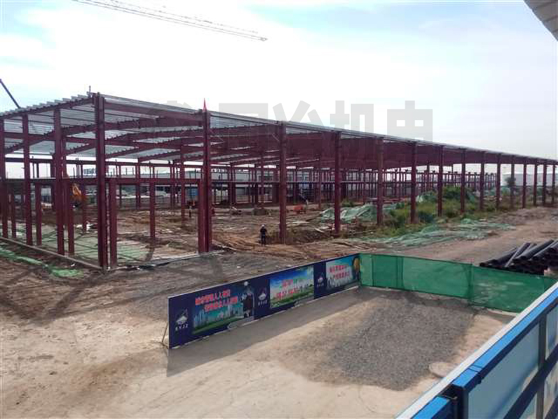 总长度248米×跨度56米×高度10米,局部二层,跨度27米×2跨,局部抽柱,开间8米,坡度1:20