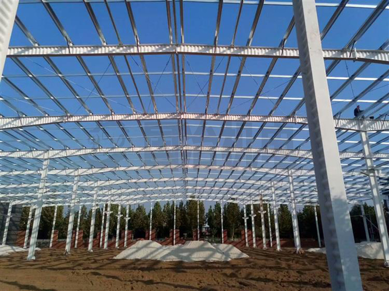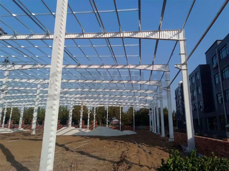 波浪腹板钢梁、波浪腹板抗风柱,波浪腹板吊车梁,平腹板钢柱,钢架用钢量为10.13kg/㎡,吊车梁用钢量为5.02kg/㎡,